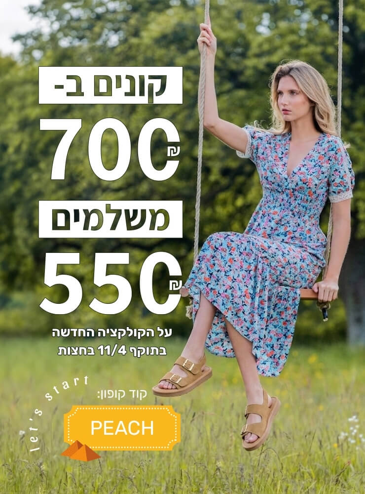 קנה 700₪ שלם 550₪בתוקף עד 11/4, על הקולקציה החדשה | קופון: PEACH
