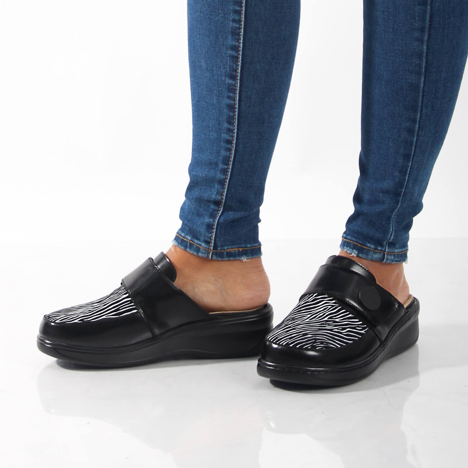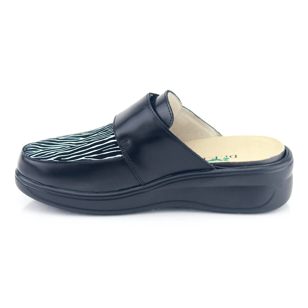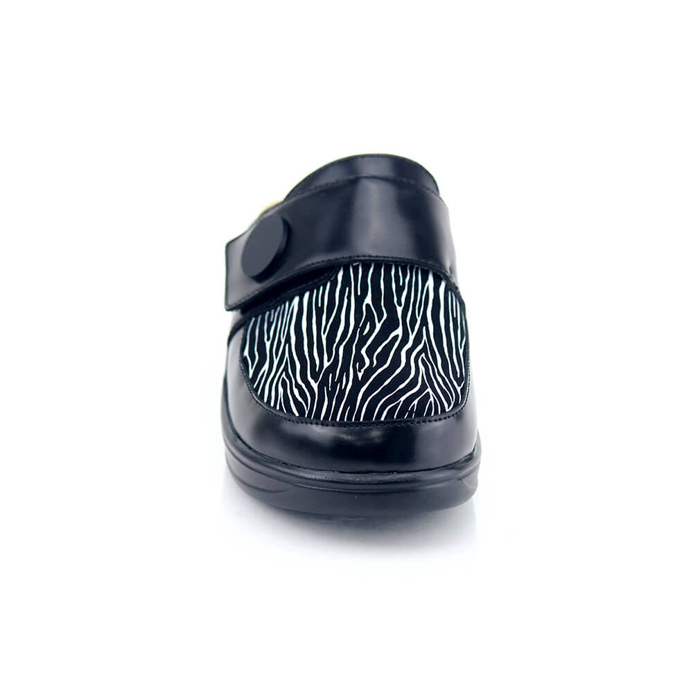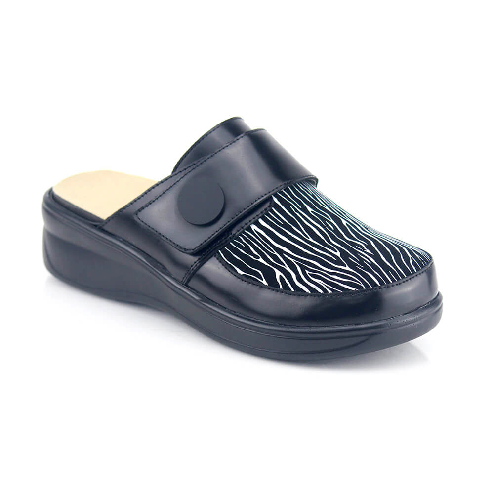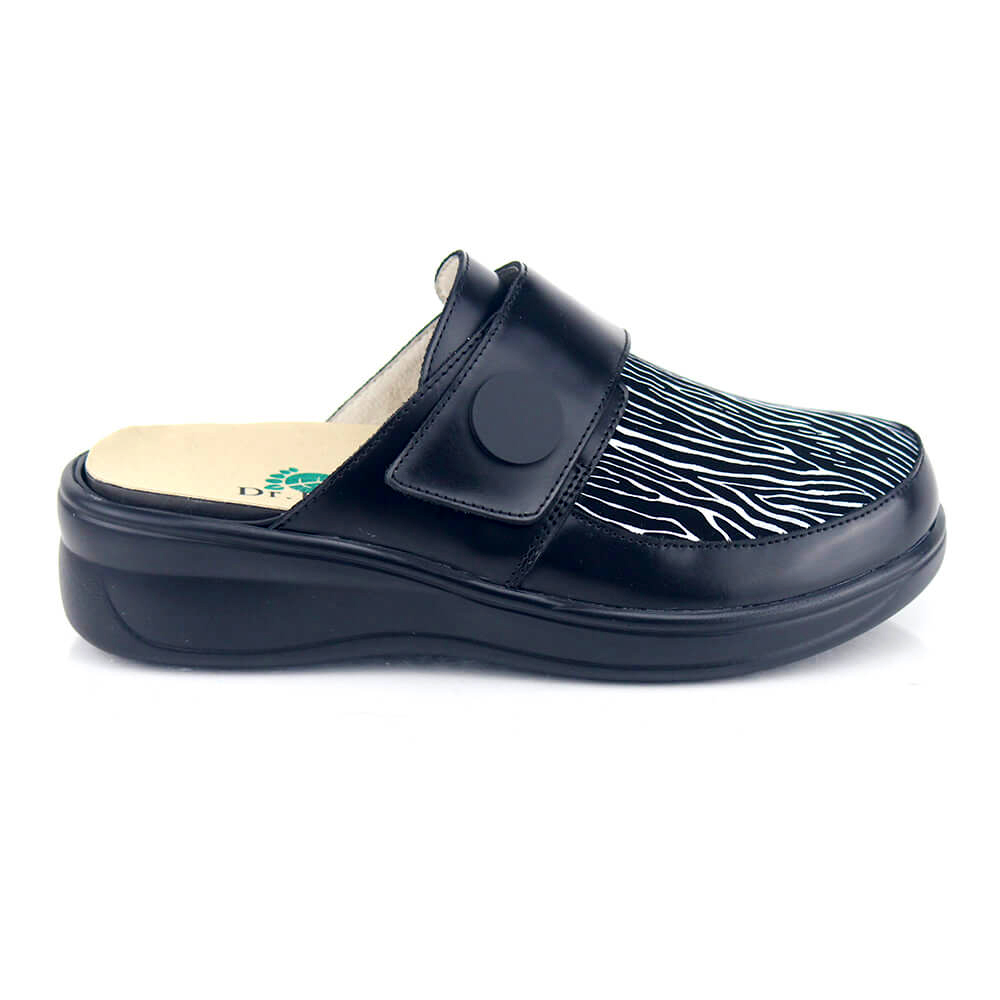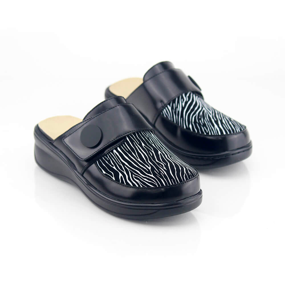 כפכפי נוחות אורטופדים וסגורים רחבות במיוחד, עם רפידה נשלפת מושלמת בהתאמה למדרסים. עשויים עור נפה עם שילוב של זברה, עם סגירת סקוטש להתאמה מיירבית לרגל שלך
