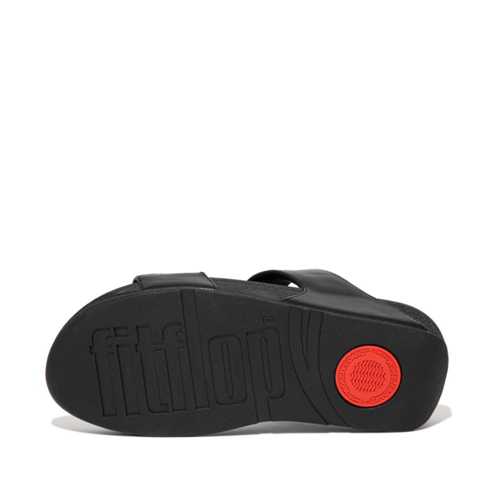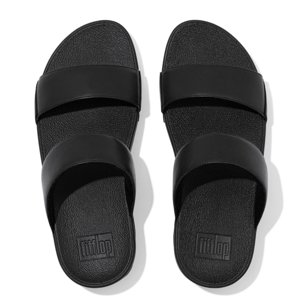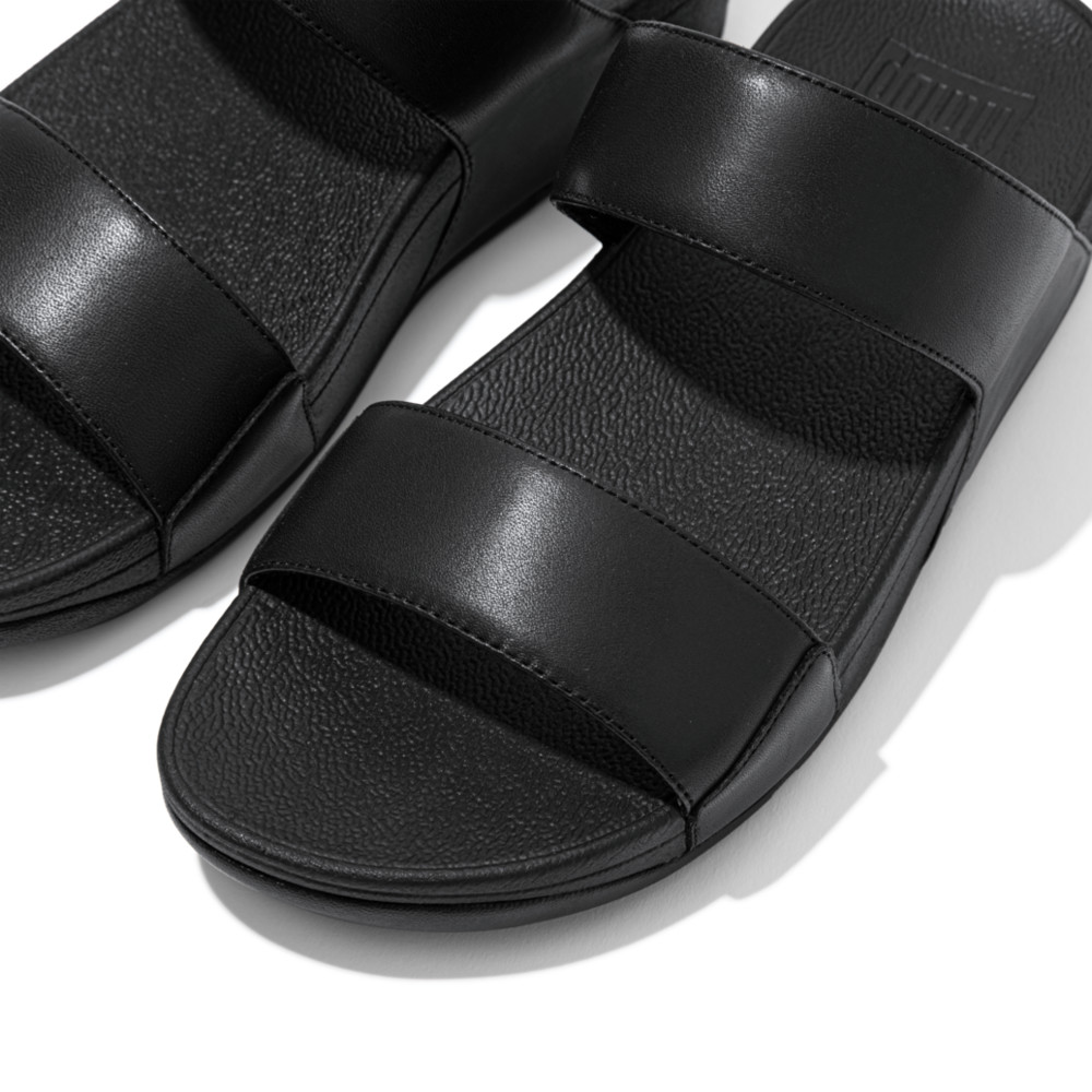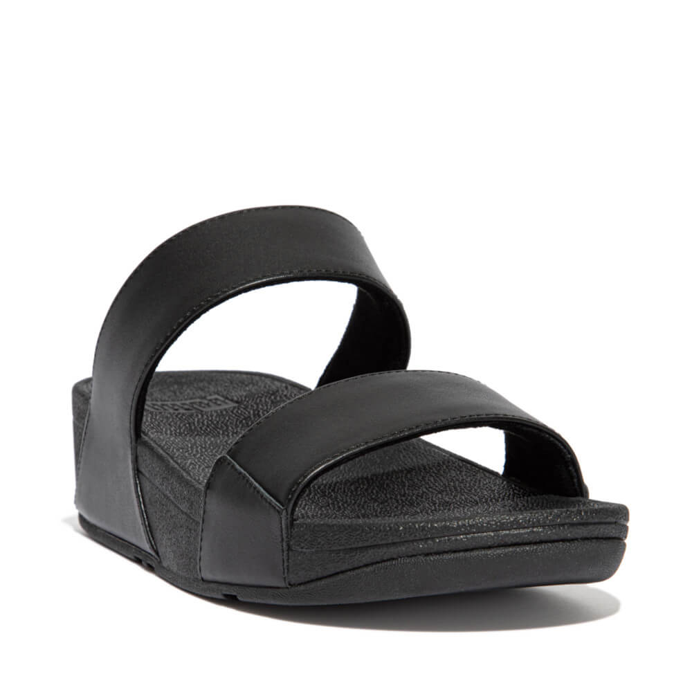 כפכפי נוחות שני רצועות, בדגם לולו סלייד מבית פיטפלופ. רצועות עור נפה בצבע שחור סולידי ונקי על גבי הסוליה הקלאסית של פיטפלופ