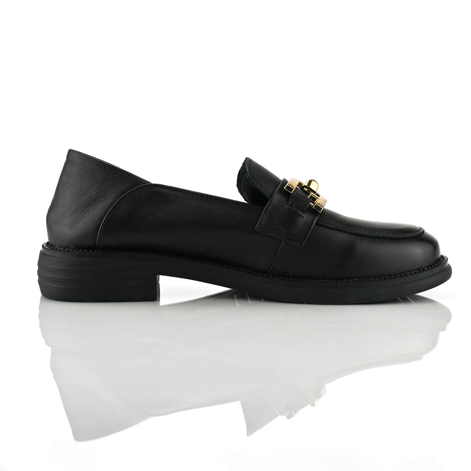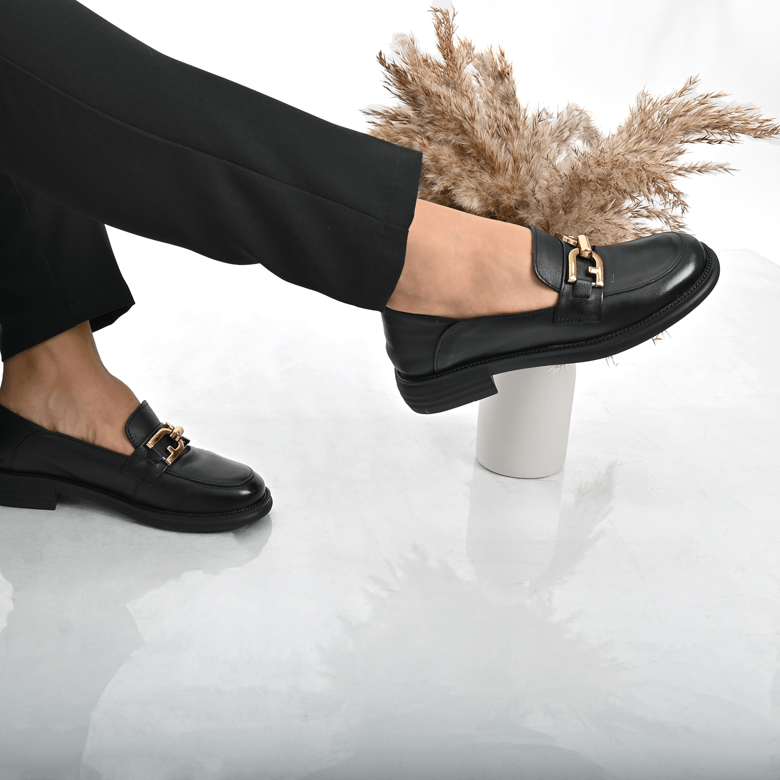 נעלי מוקסין אבזם דומיננטי עור נפה שחור