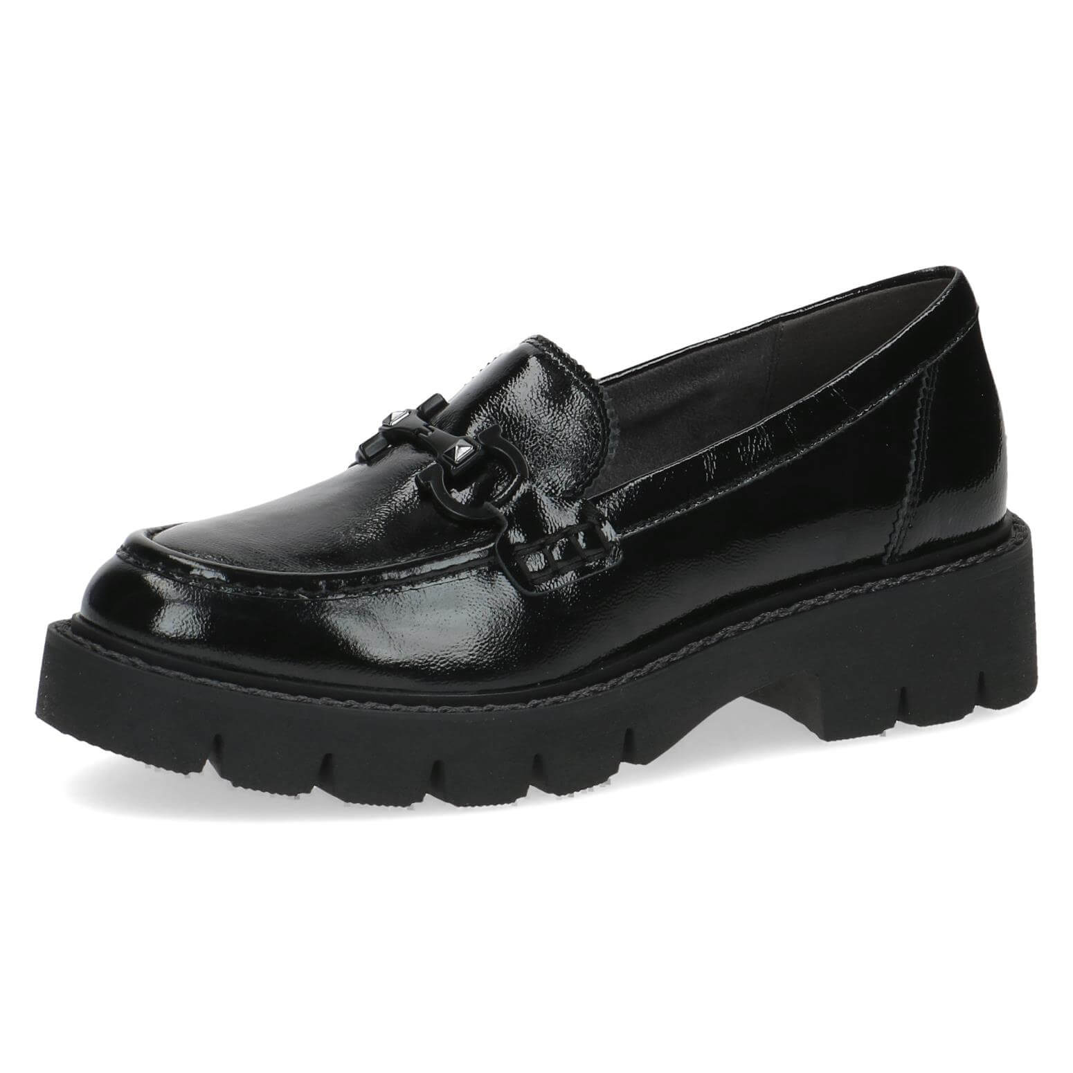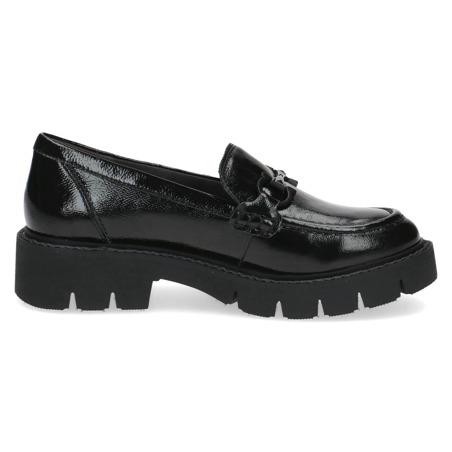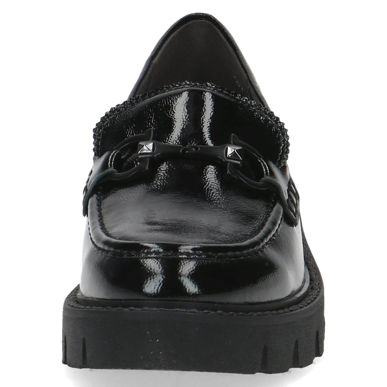 נעלי מוקסין על סולית טרקטור מאסיבית, בדיוק כמו שסולית טרקטור אמורה להיות. מגיעות עם רפידת memory foam נשלפת. עשויות עור בגימור לק מבריק ומעוטרות אבזם עם ניטים עדינים למראה קשוח ומלא סטייל