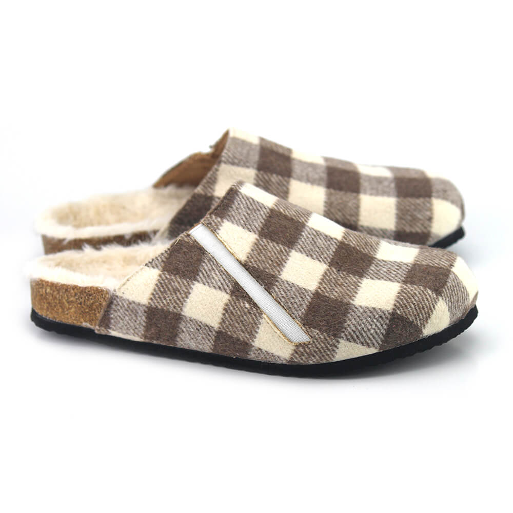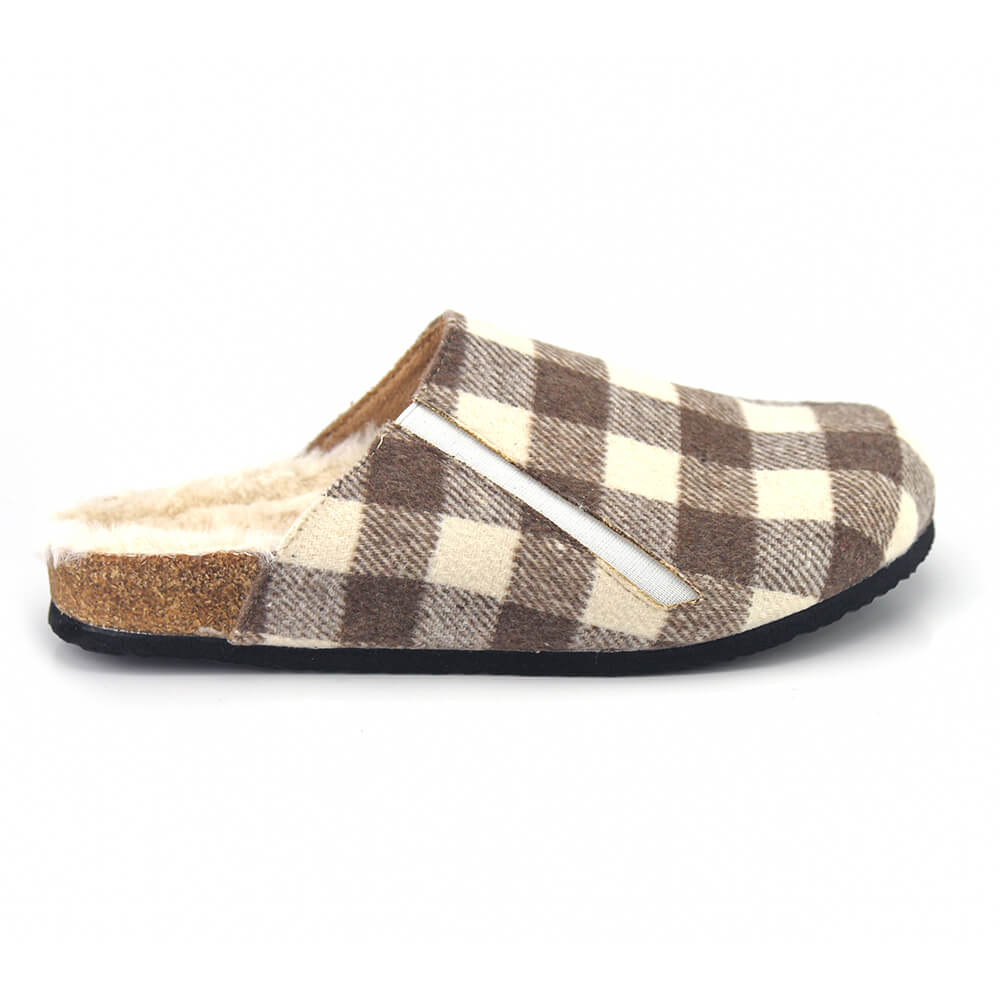 נעלי בית בעיצוב קוביות על סוליית שעם בריפוד קל בתוספת של פרווה עדינה מפנקת