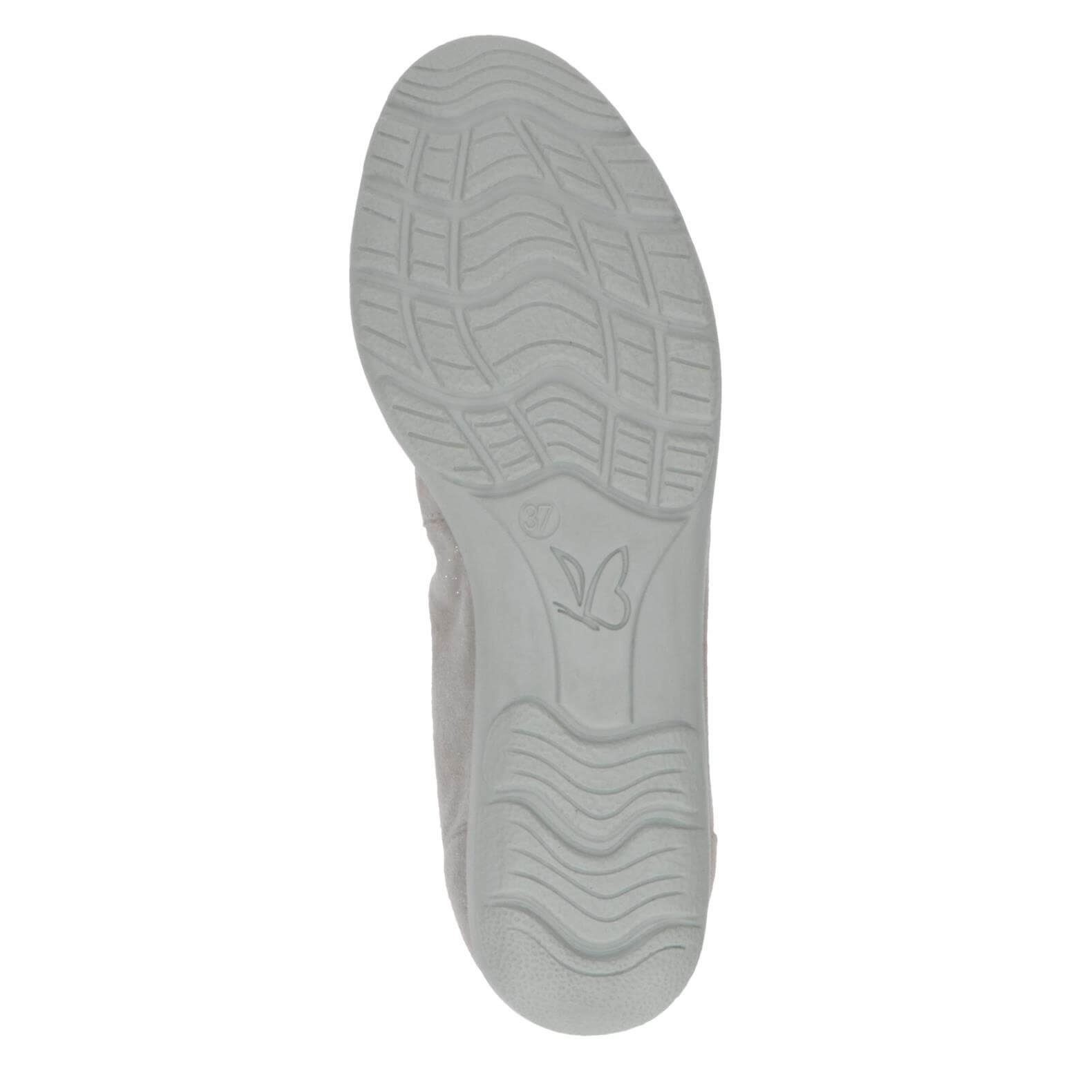 נעלי סירה עשויות עור בעל רכות עם נוכחות, גמישות ומפנקות, עיצוב נקי בצבע אפור כסוף עם סיומת מנצנצת שתכניס לך קצת ברק ליום. על רפידת הפטנט הייחודית onAir מבית קפריס.