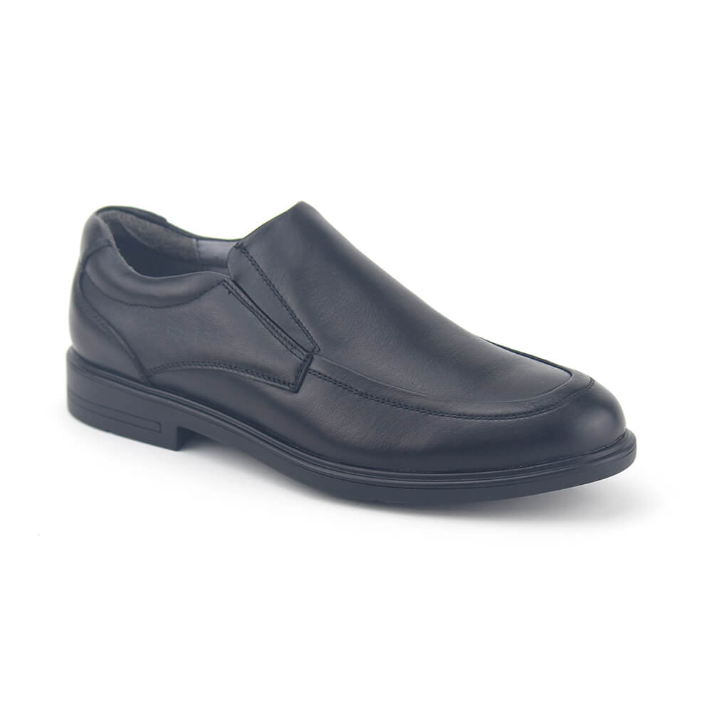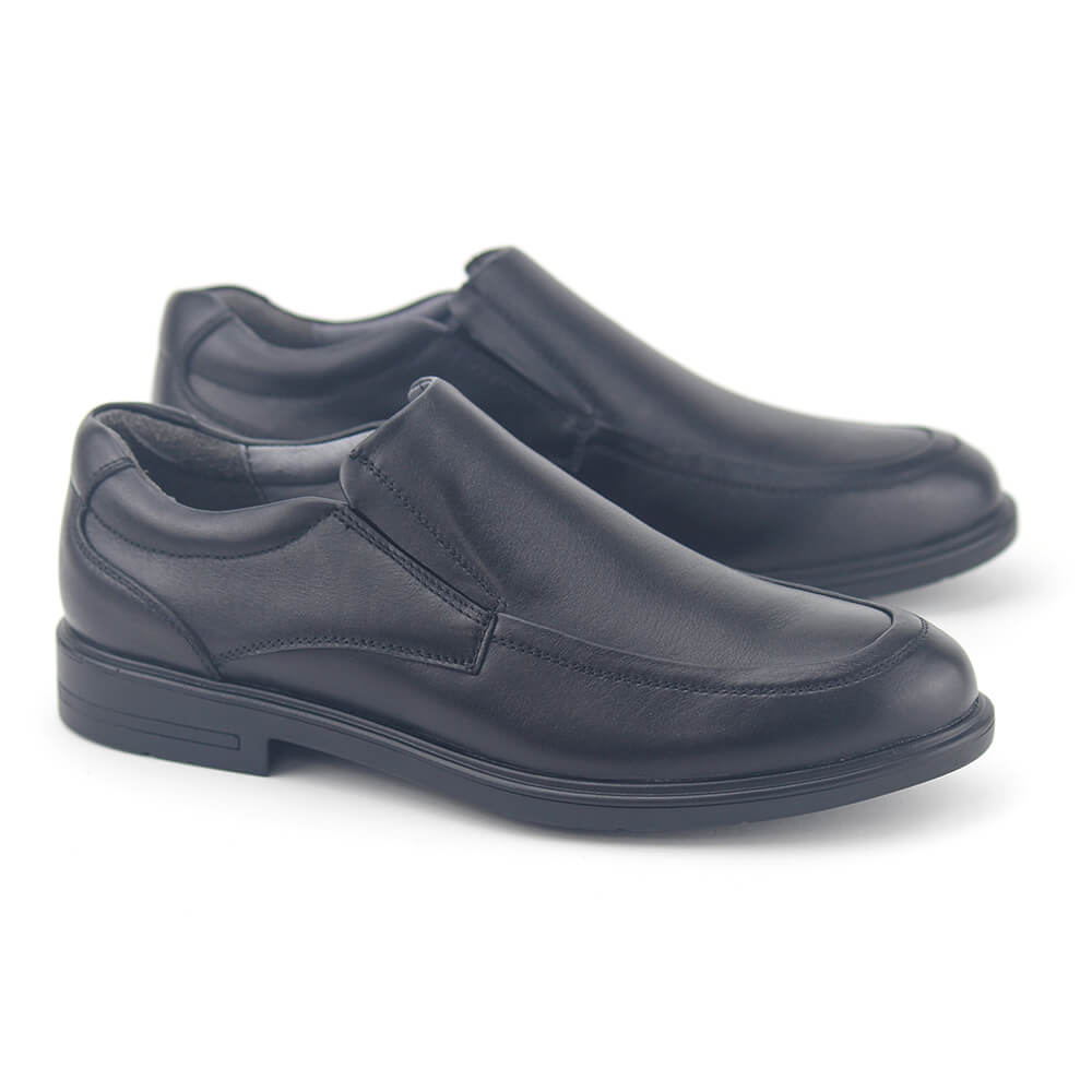 נעלי סירה לגברים עשויים עור נפה איכותי בצבע שחור על סוליה בגובה 3 ס"מ בסגירה אלסטית. מכיל רפידה נשלפת – מושלם בהתאמה למדרסים. נעליים אלגנטים לגברים שחשוב להם הנוחות