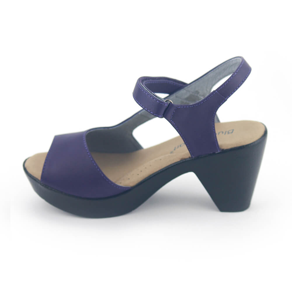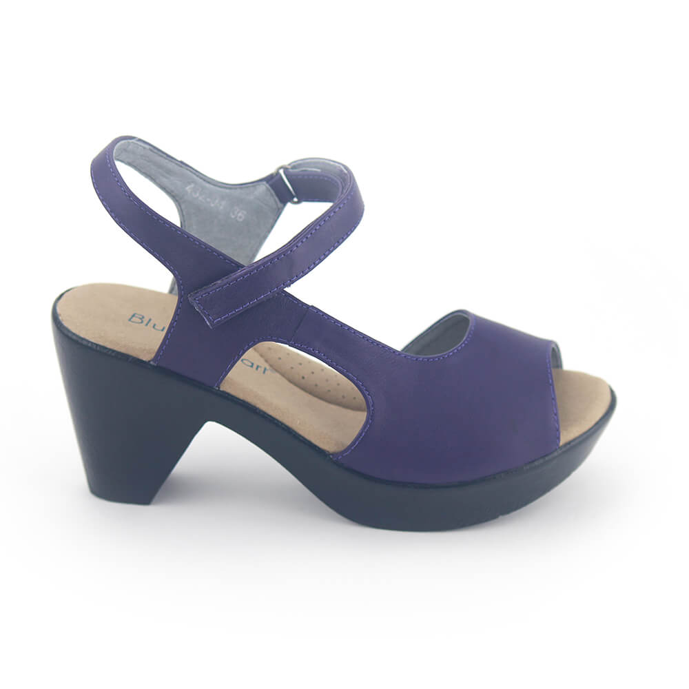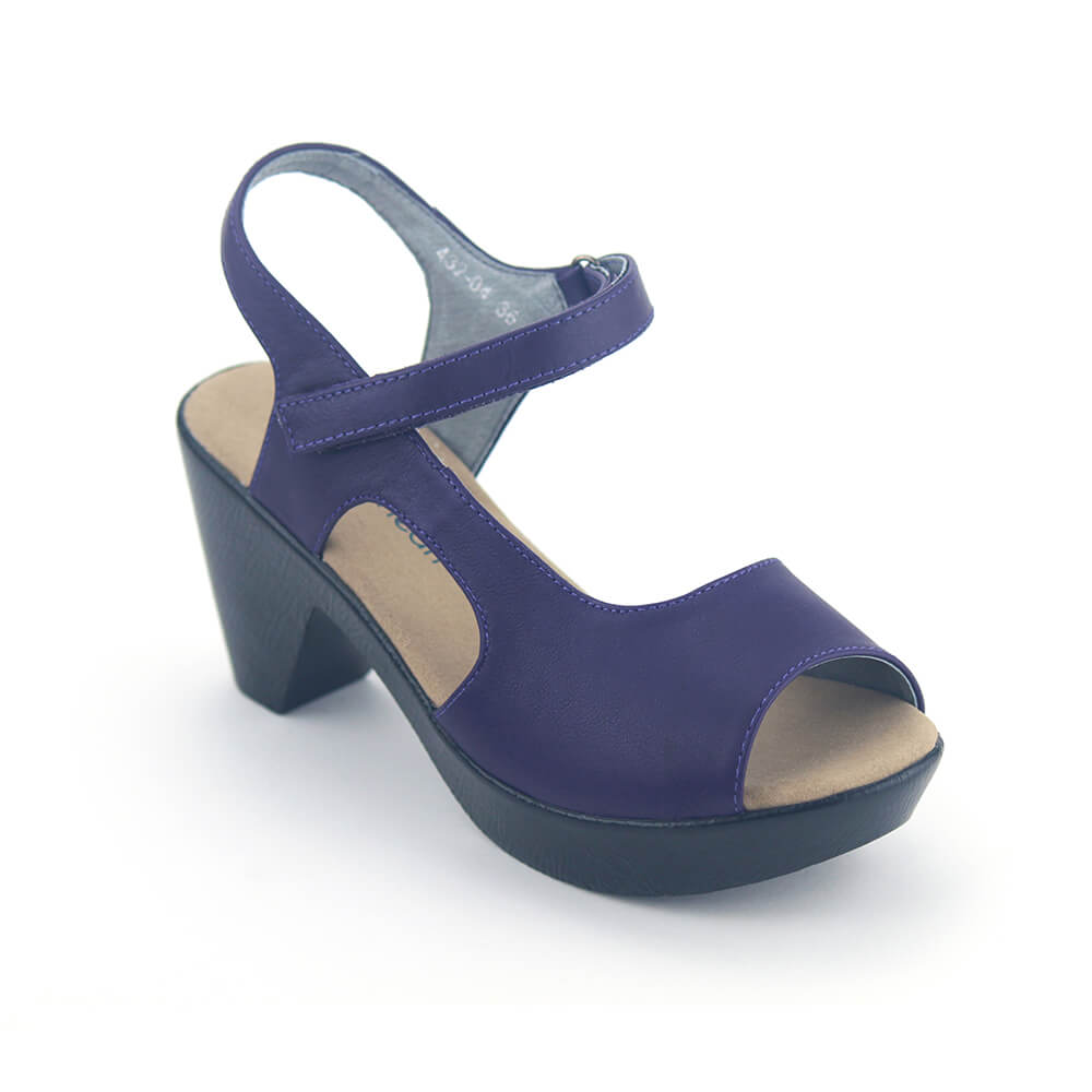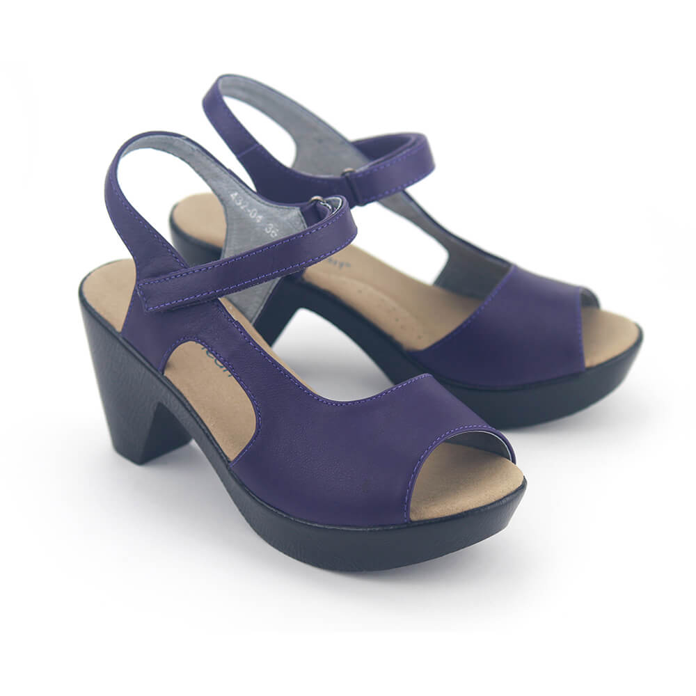 סנדלי פלטפורמה פלמנקו בעיצוב א-סימטרי מחמיא עשוי עור נפה רך בצבע סגול מהפנט עם רצועת עדינה בסגירה סקווטש להתאמה אידיאלית, מאובזר ברפידה רכה על עקב בגובה 7.5 ס"מ