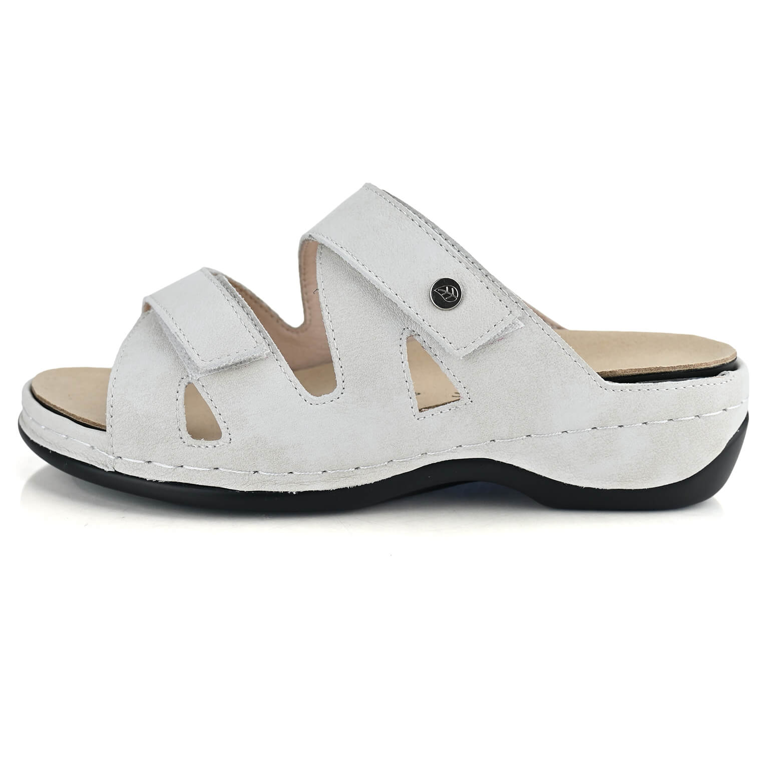כפכפים לנשים Bruges של DR.FLEX לבן כפכפי ברוז׳ בצבע לבן בגימור מדוייק על סולייה בגובה 3.5 ס״מ בסגירת סקוטש, עיצוב רצועות משתלבות ועשויים עור איכותי, מגיעים עם רפידה אורטופדית נשלפת – מושלמים למדרסים