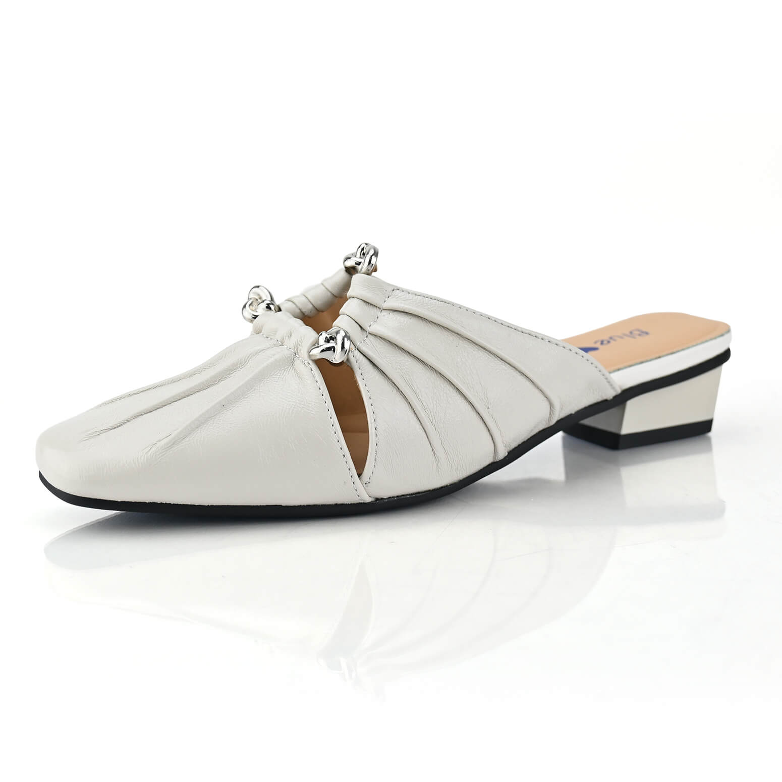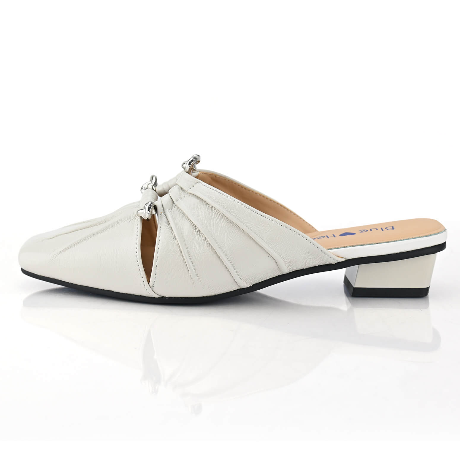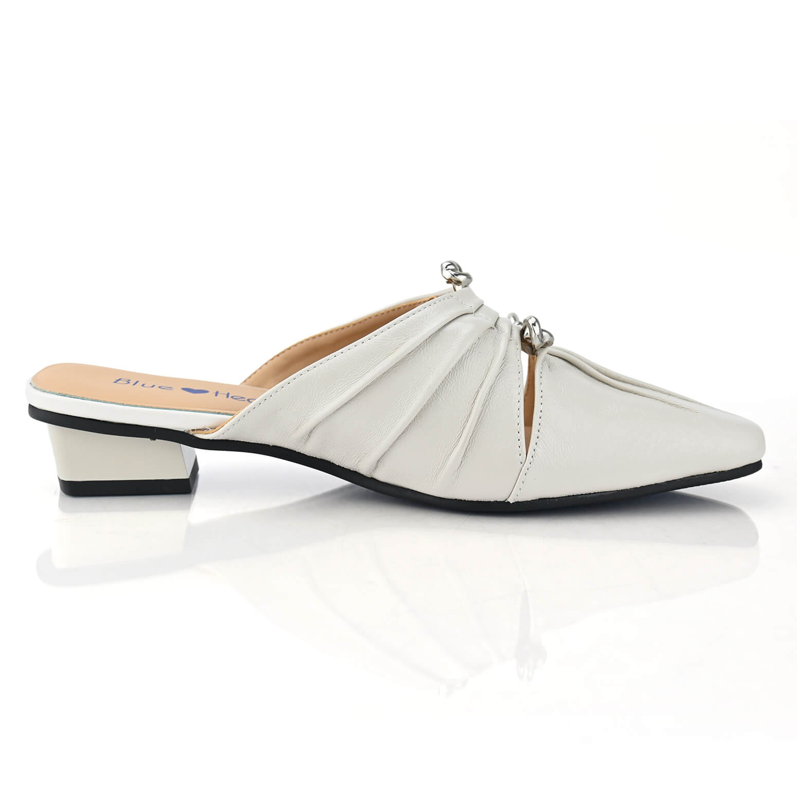 כפכפי Windmere לנשים של BLUE HEART. השילוב המתוחכם של קיפולי העור בחזית והגימור המבריק יוצר מראה על-זמני אך רענן שמזמין אותך לחרוש את היום. הפיס העדין הזה ילווה אותך בצעד בטוח, מיום עבודה ועד ערב חגיגי, תמיד תרגישי נינוחה ושיקית. העקב הנמוך והיציב, יחד עם החרטום המעט שפיצי, מעניקים תמיכה ואלגנטיות כאחד, מבלי להתפשר על התחושה הטובה. זהו פריט מפתח בארון שלך, כזה שכל מבט אליו מעלה חיוך קטן של שביעות רצון.