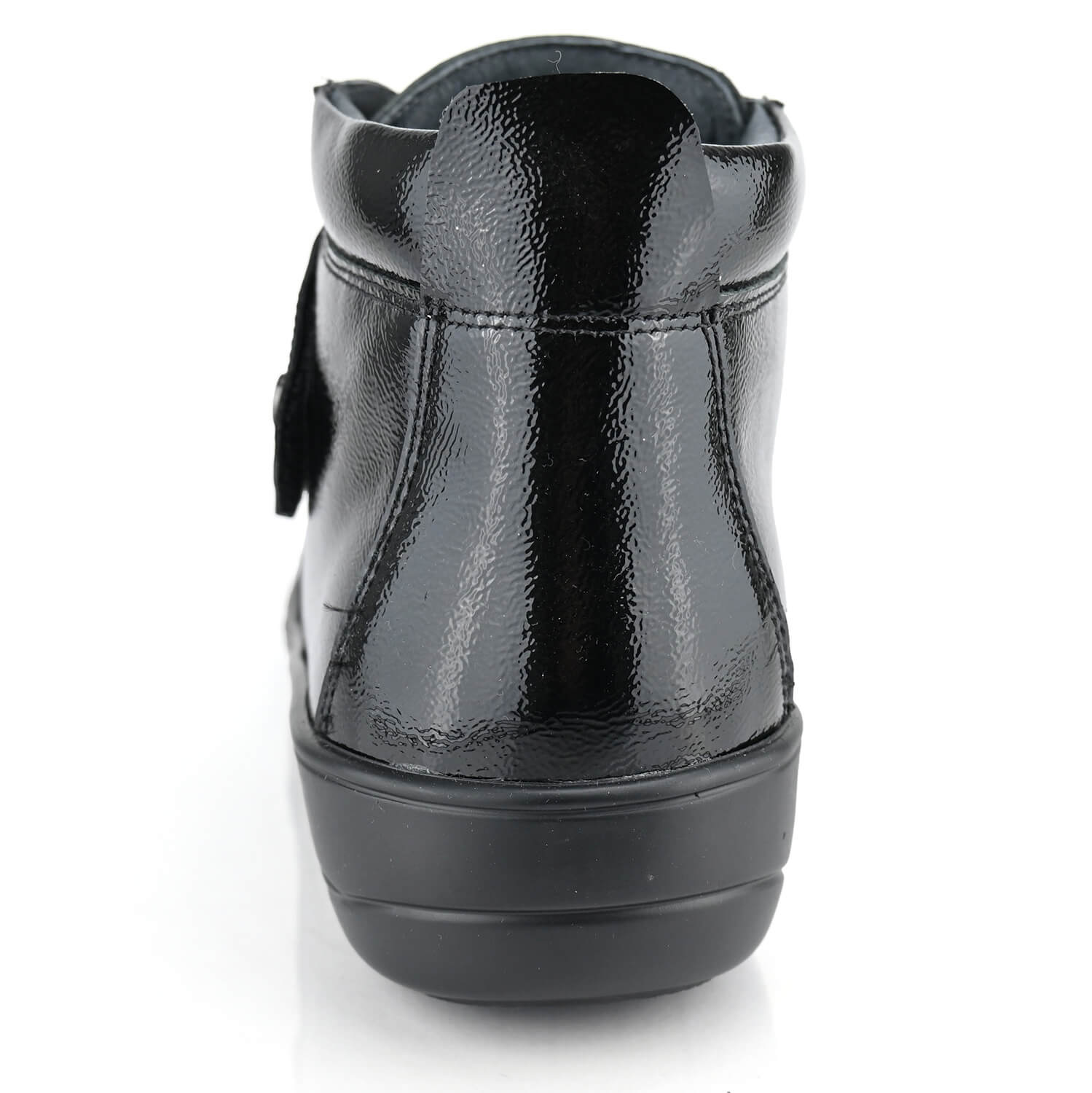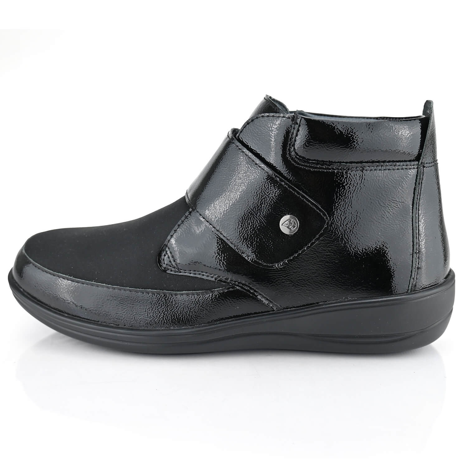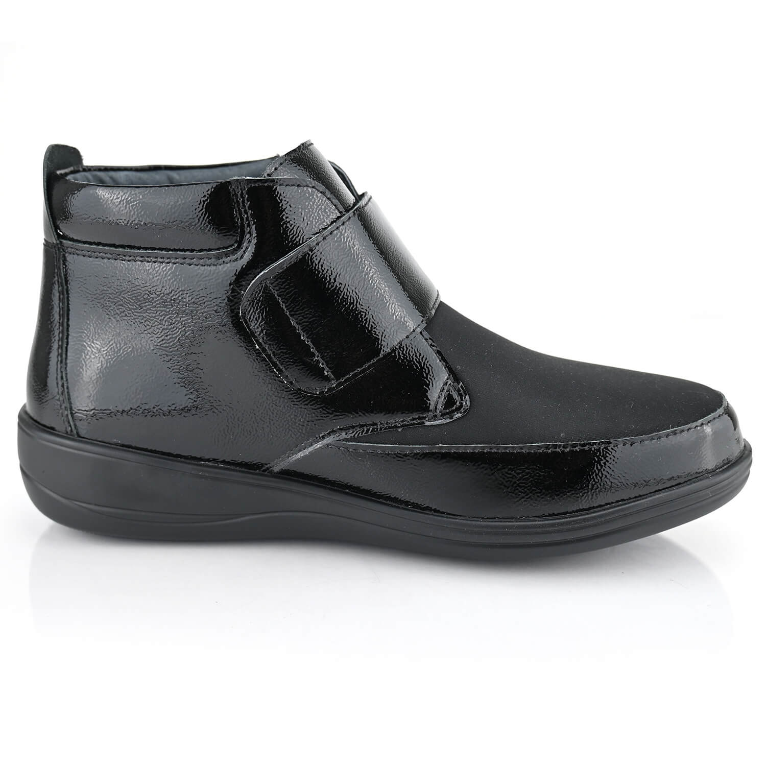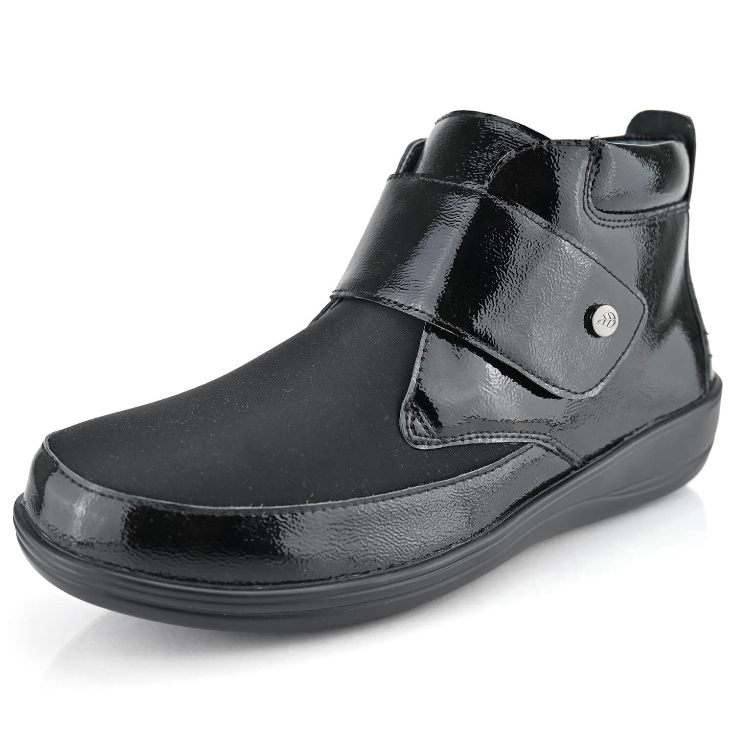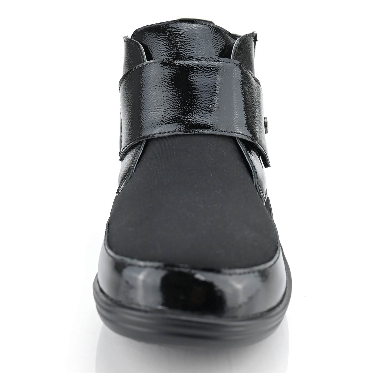 מגפוני DR.FLEX מעור לקה מבריק, משלבים עיצוב אלגנטי עם נוחות יומיומית מרבית. רפידה רכה ורוחב רחב מאפשרים התאמה אישית מושלמת למדרסים ונוחות לאורך כל היום.