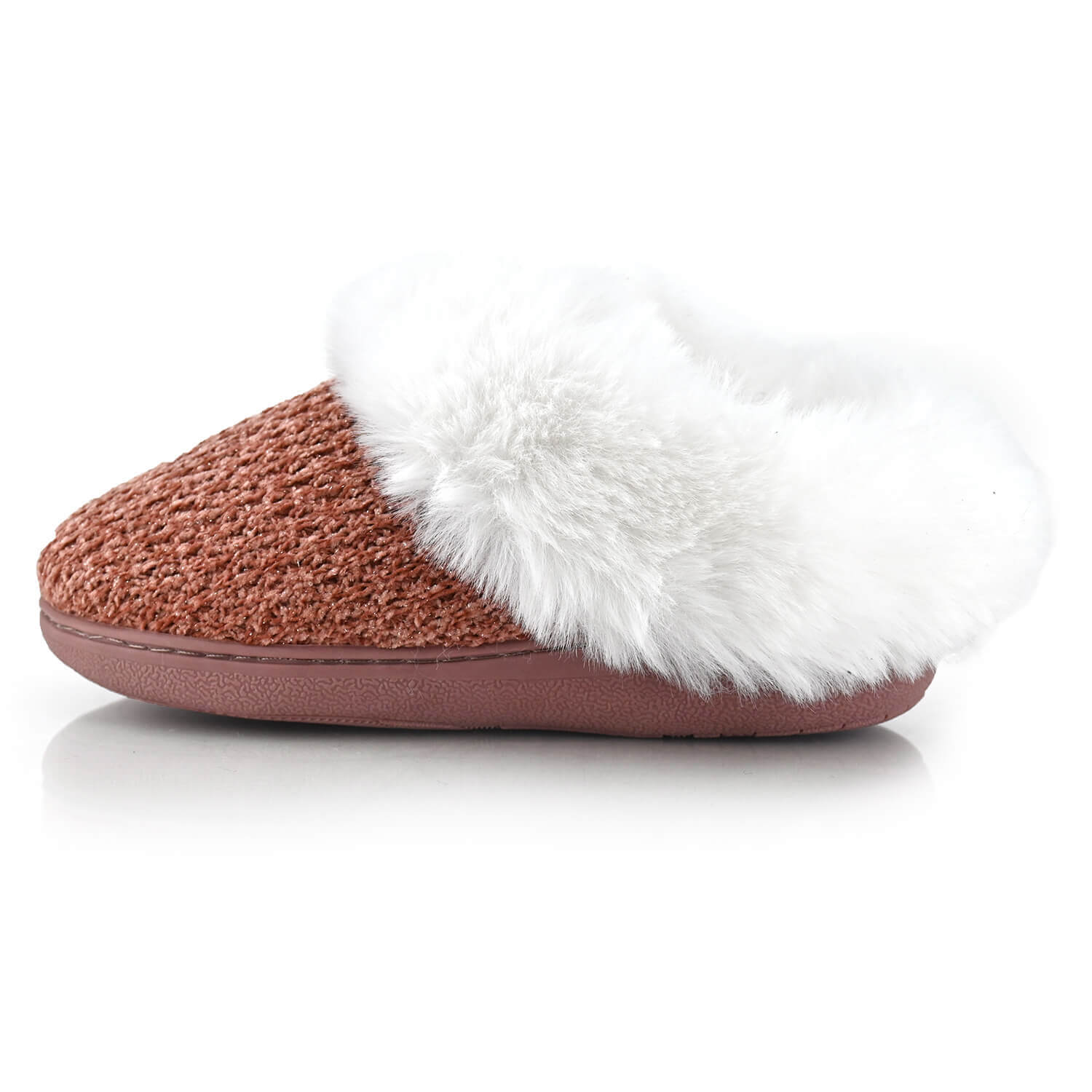 נעלי בית אלבמה בצבע אפרסק נעליים במראה סרוג בשילוב פרווה מלטפת שעושה חשק להתכרבל בתוכה, יפייפיות ומחזיקות את הרגל – פינוק אמיתי על סוליה בגובה 3.5 ס"מ