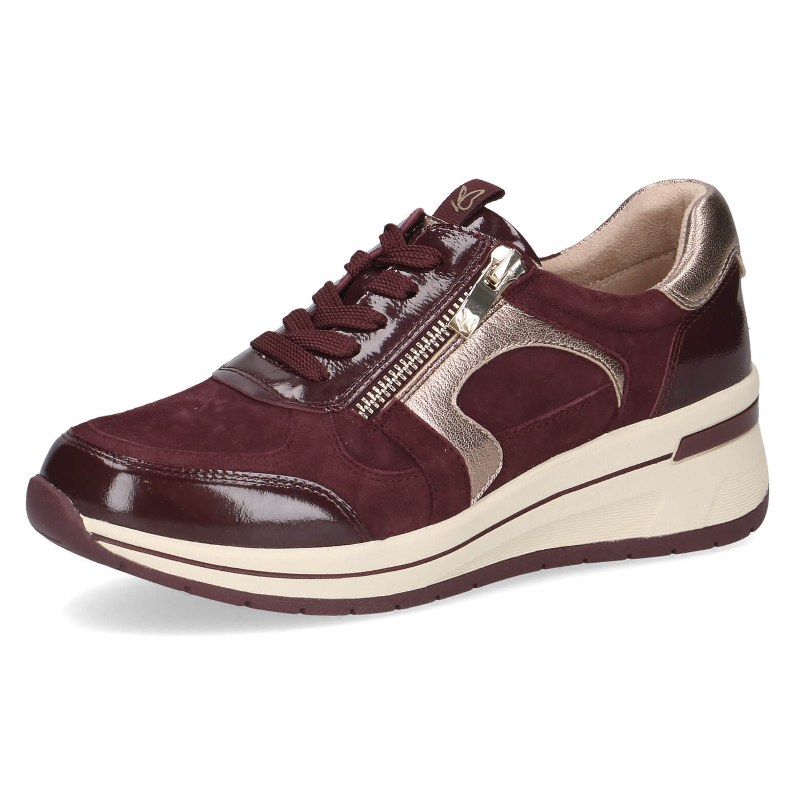נעלי סניקרס של CAPRICE משלבות צבעי בורדו חמים עם נגיעות מטאליות עדינות, ויוצרות מראה ייחודי ומלא סטייל. העיצוב המודרני משתלב בקלות בכל לוק ומרגיש קליל ולא מתאמץ. בזכות הגזרה התומכת והנוחות המוכרת של המותג, תיהני מביטחון ונוחות בכל צעד – נעליים שנראות טוב בדיוק כמו שהן מרגישות.