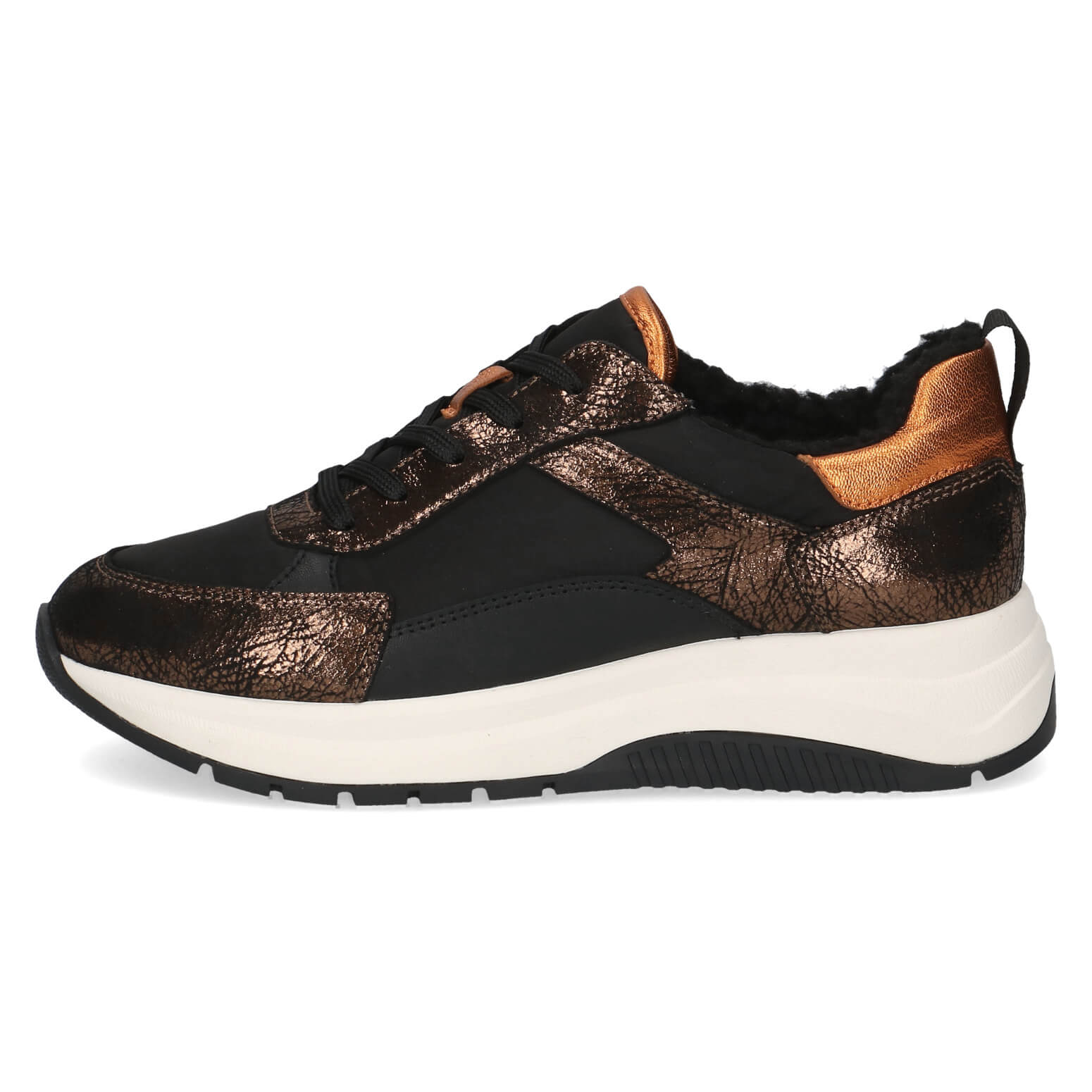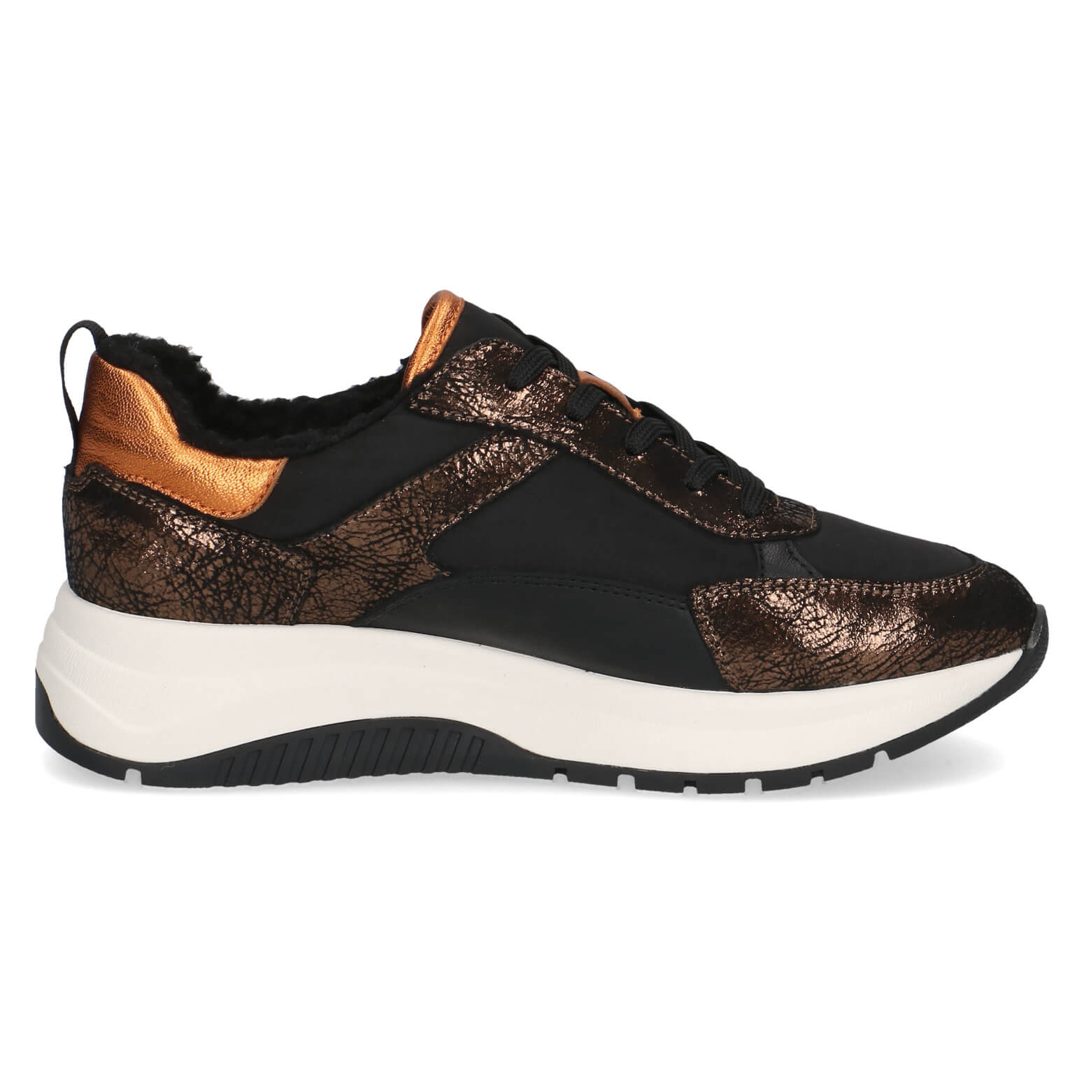 נעלי סניקרס מבית CAPRICE שמציעות נוחות בלתי מתפשרת וסגנון מקורי ואופנתי. העיצוב החכם משלב חומרים מרהיבי עין בגוון חום מטאלי ושחור. עם מבנה נוח והתאמה מושלמת לכל יום ולכל עונה, התחושה הקלילה תלווה אותך בכל צעד וצעד.