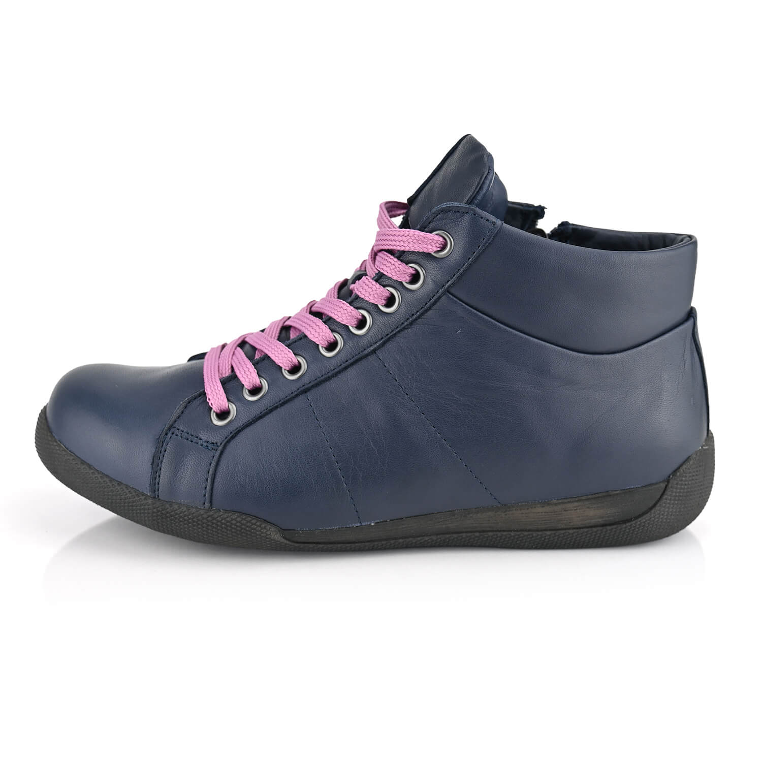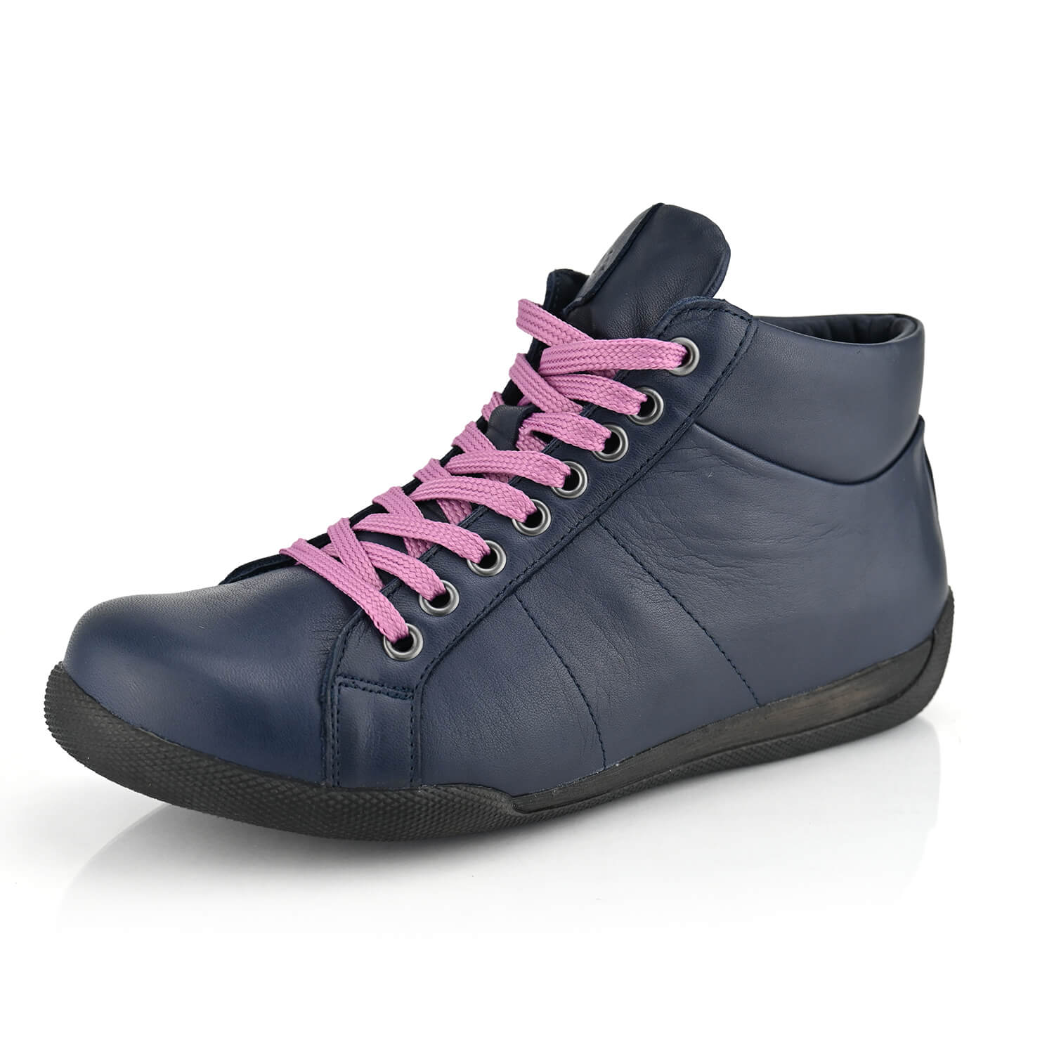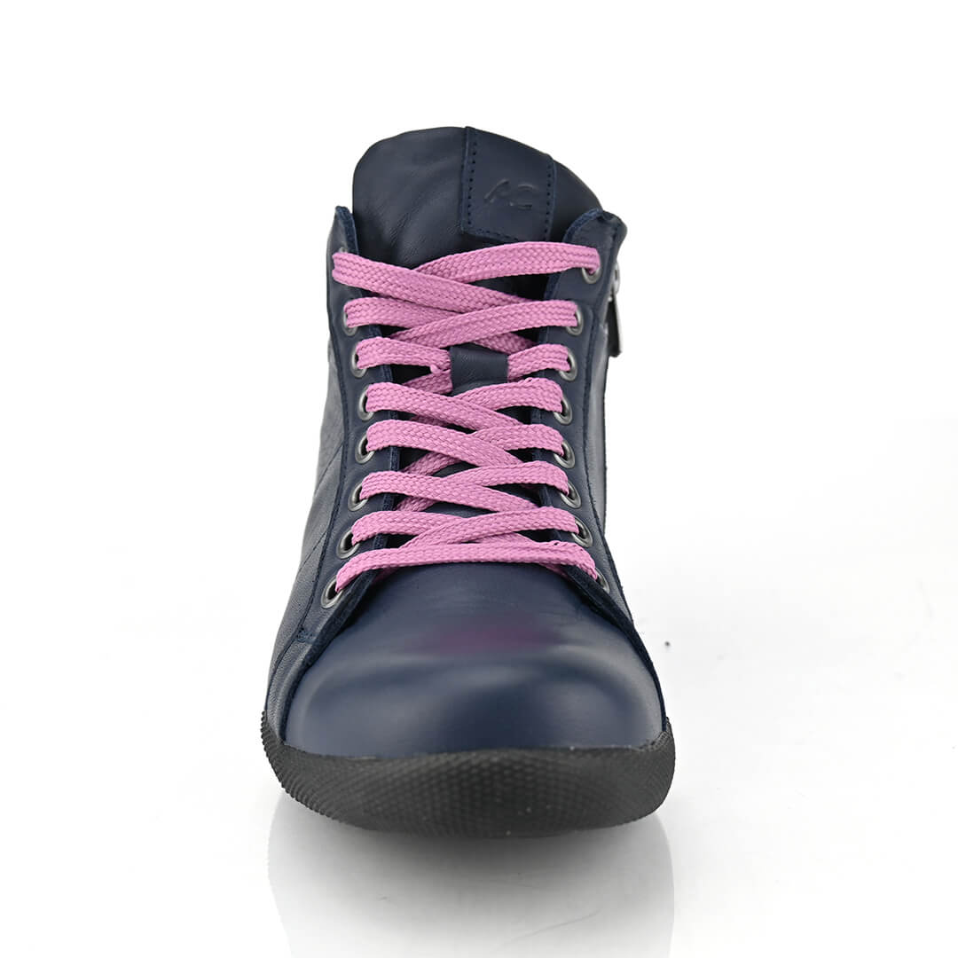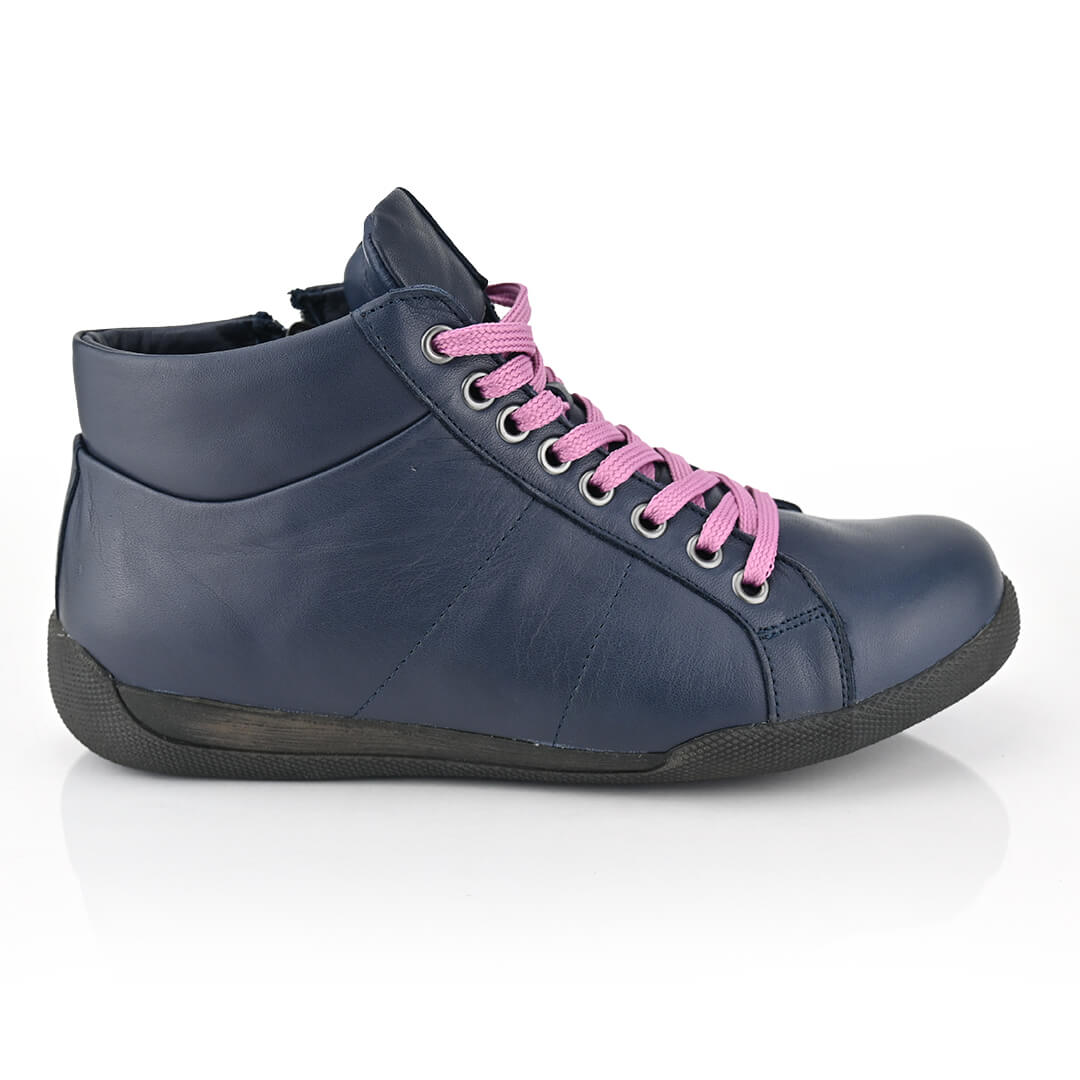 נעלי סניקרס של Andrea Conti שעוצבו כדי להעניק לך חוויה של נוחות וסטייל בלתי מתפשרים. הגוון הכחול העמוק והשילוב עם שרוכים ורודים מוסיפים נגיעות אופנתיות שמשדרות ביטחון עצמי ויחודיות בכל צעד. הרפידה הנשלפת מתאימה במיוחד לשימוש עם מדרסים אישיים, והרחב המיוחד מאפשר התאמה מושלמת לנוחות מושלמת. מיועדות לנשים שרוצות להרגיש טוב עם עצמן בכל רגע.