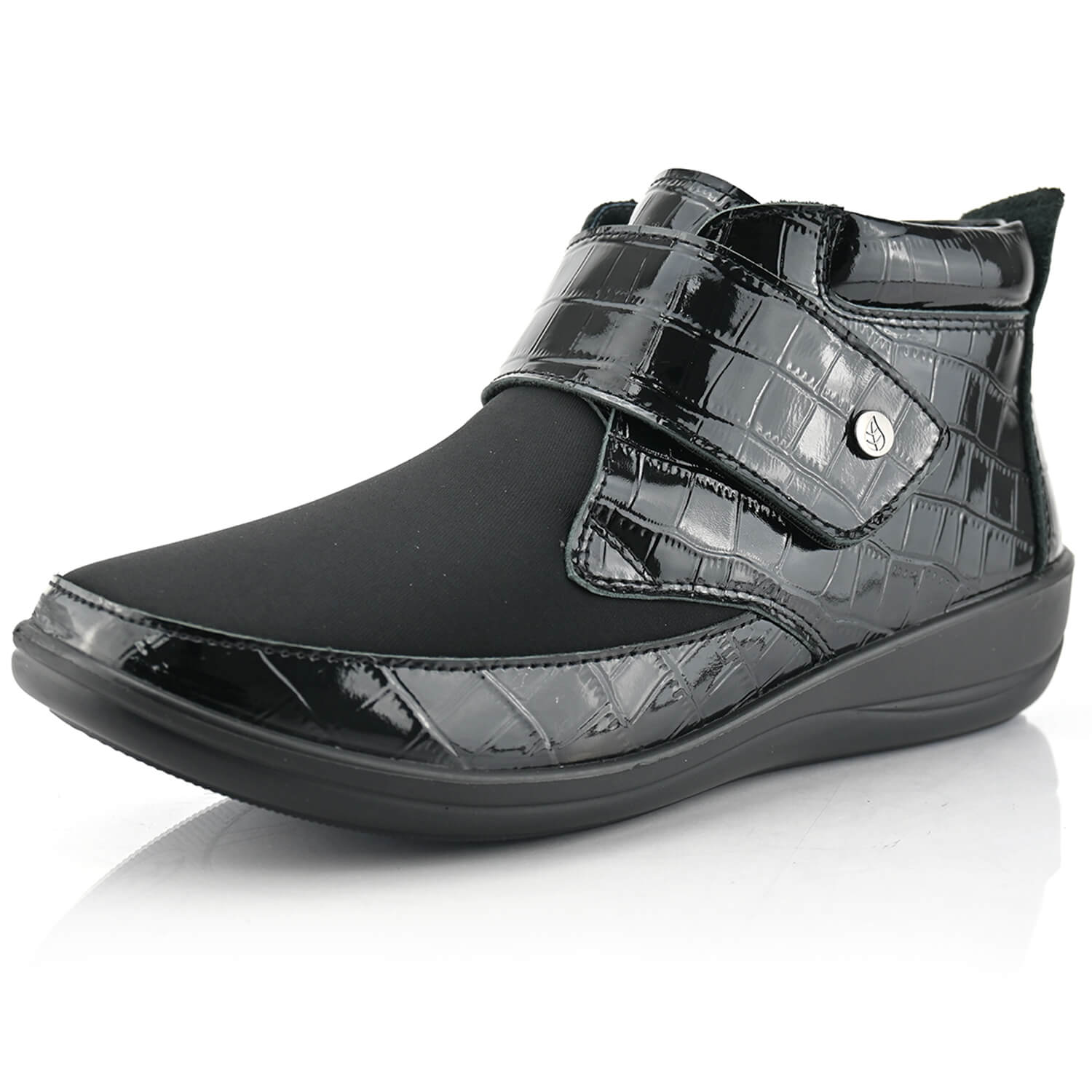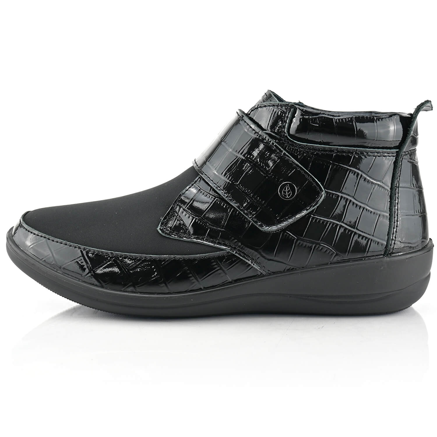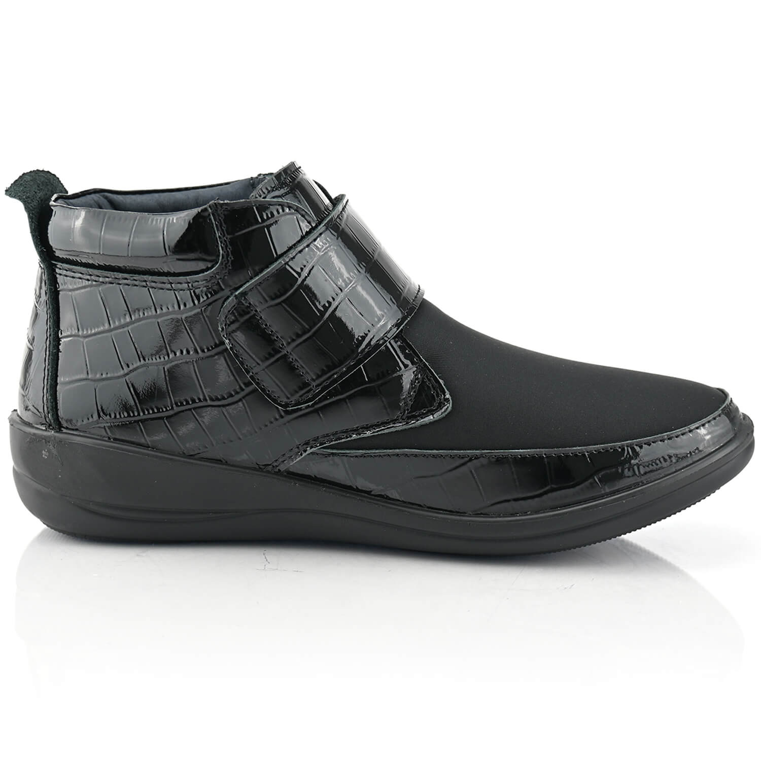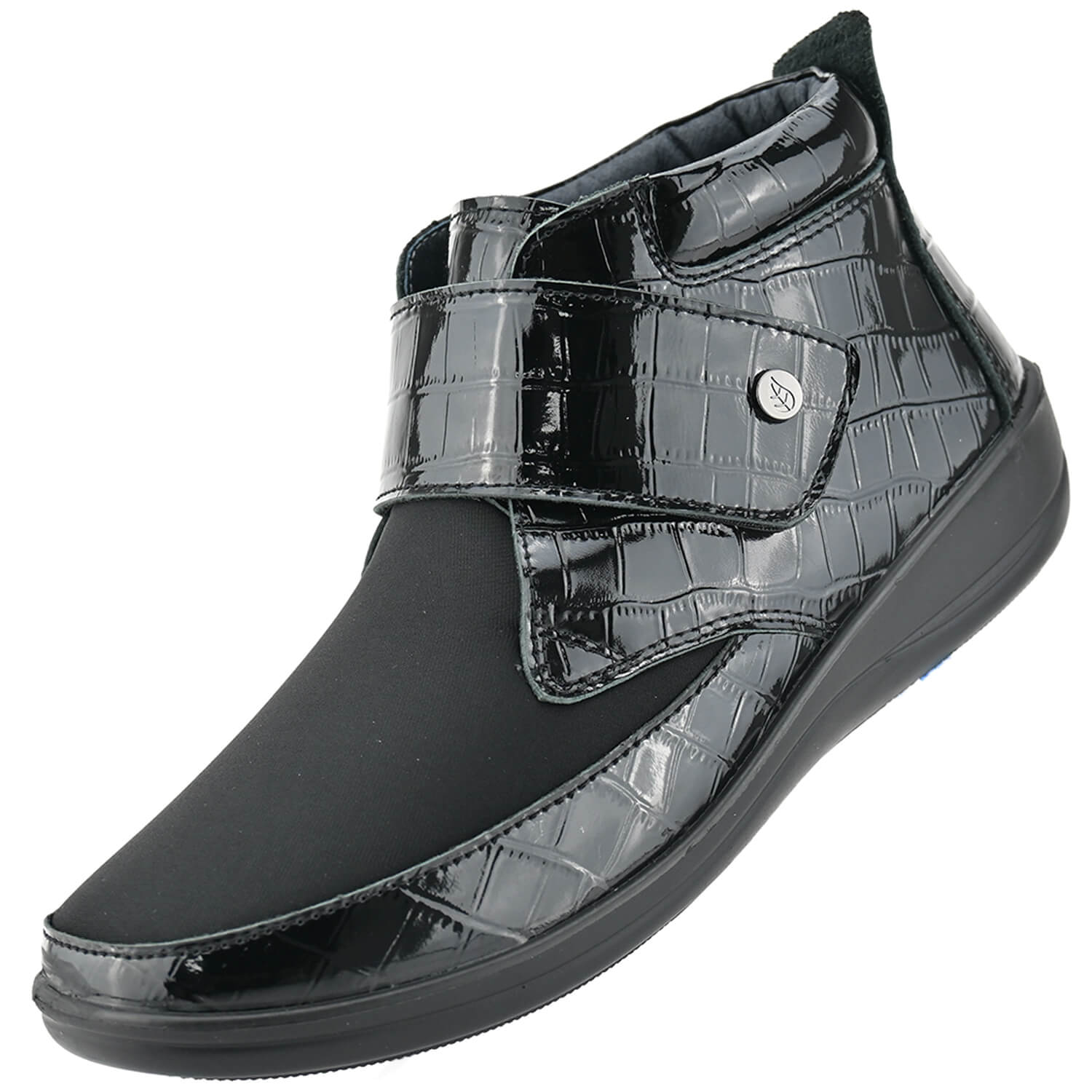 מגפוני DR.FLEX מציעים עיצוב ייחודי המשלב עור קרוקו שחור ומקל על כל צעד. הרפידות מספקות רכות ונוחות יוצאת דופן. מושלם לנשים עם רוחב רחב ולמדרסים אישיים.