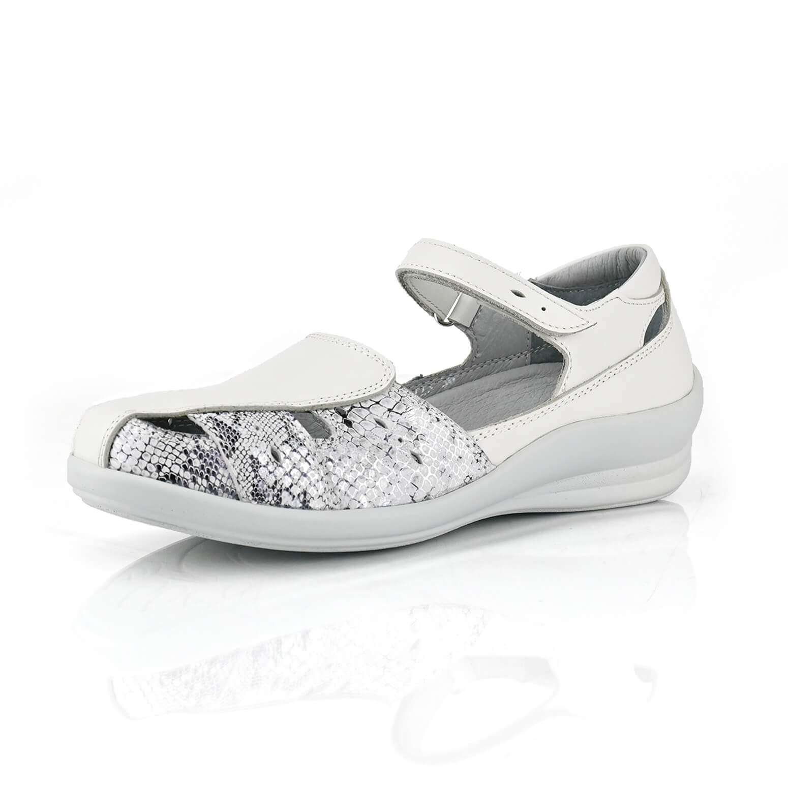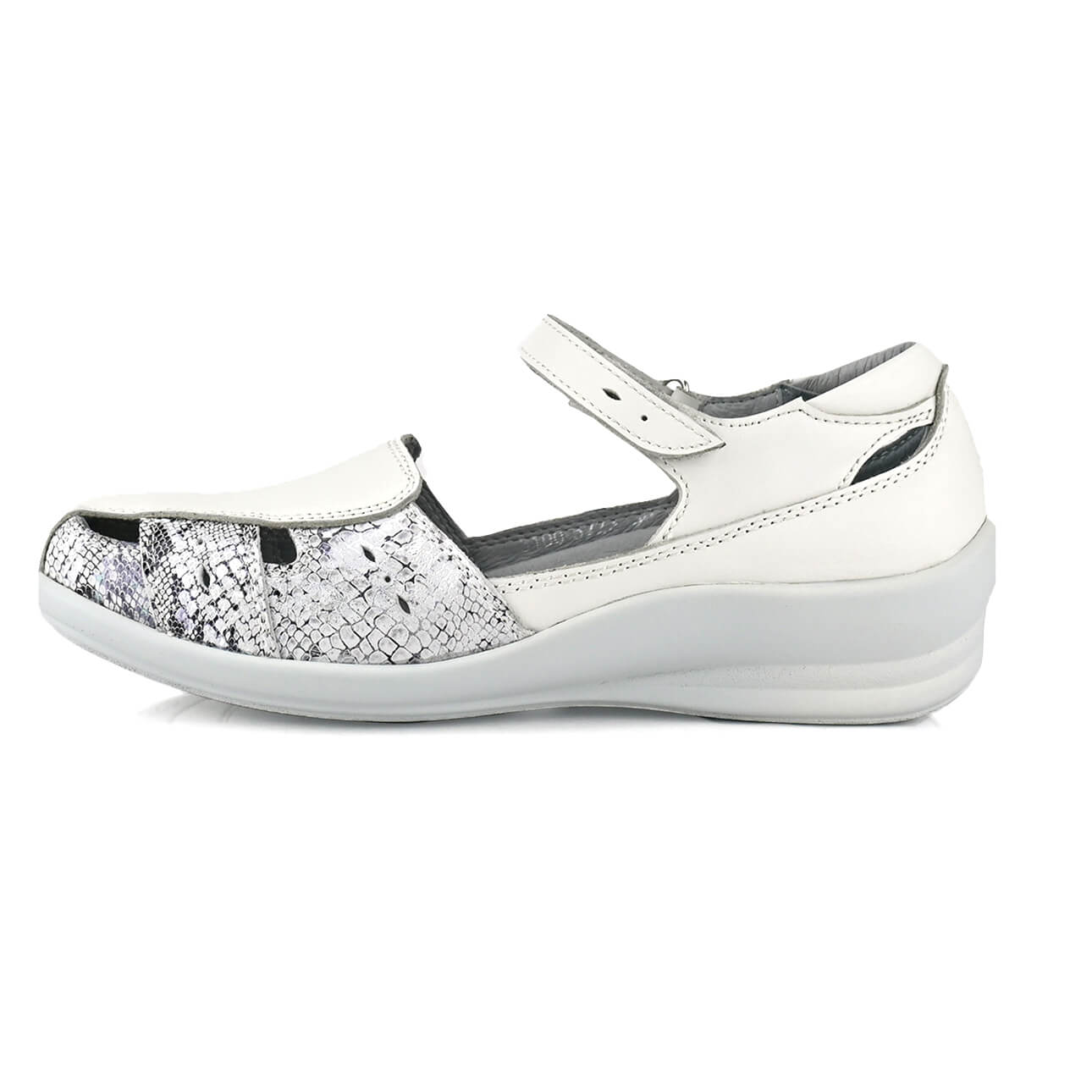סנדלי ונציה בצבע פנינה משולב נחש כסוף סנדלי ונציה בצבע פנינה משולב נחש כסוף מבית ד”ר פלקס סגורים מלפנים גם רצועת סקוטש עדינה מסביב לקרסול. מאובזרים ברפידה נשלפת עשוים עור נפה בצבע בז' בשילוב נחש זהוב.