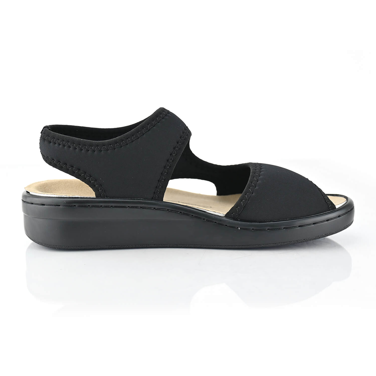 סנדלי Dublin שחור של DR.FLEX סנדלי דגם דובלין האורטופדיים עשויים לייקרה בצבע שחור ניטרלי, סופר אלסטים, על סולייה בגובה 3.5 ס"מ, הסנדלים שמגדירים את הנוחות מחדש בקלילות ללא פשרות. מאובזרות ברפידה נשלפת, ניתן לשלוף לניקוי קליל ומותאם למדרסים.