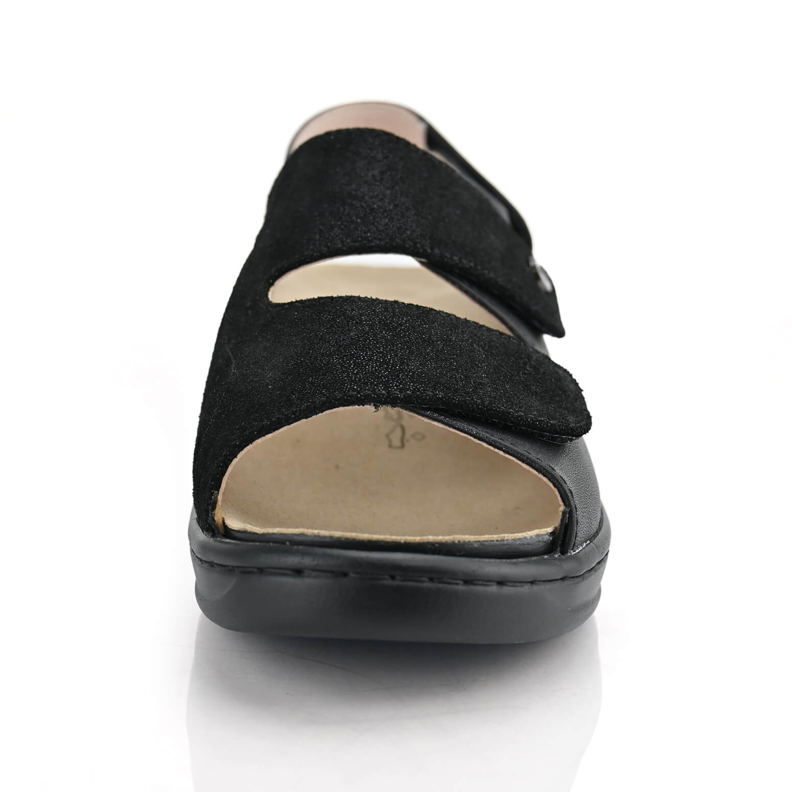 סנדלים לנשים Malaga של DR.FLEXֿ, סנדלי מלאגה בצבע שחור, עם שתי רצועות סקוטש קדמיות ורצועה אחורית לאחיזה מושלמת. עשויים עור נפה איכותי, בטנת עור משולב עם ריפוד באיזור ההלוקס ולגוס. מאובזרות ברפידות אורטופדיות נשלפות – מעולה בהתאמת מדרסים אישיים